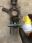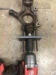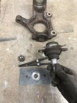Seems like ball joint threads are scarce here so here's my contribution. I made a ball joint tool based on a design by @txtoth. No heat, no sketchy setups, and no BFH. It doesn't need as tall of a setup area as the Ford tool, so it might work with the knuckle in situ if you're willing to use a big wrench instead of an impact. The design works around a 1/2" thick steel plate that should allow for install as well removal by swapping all nuts to the other side of the plate and driving the M10 nuts instead, but I haven't tested it yet.